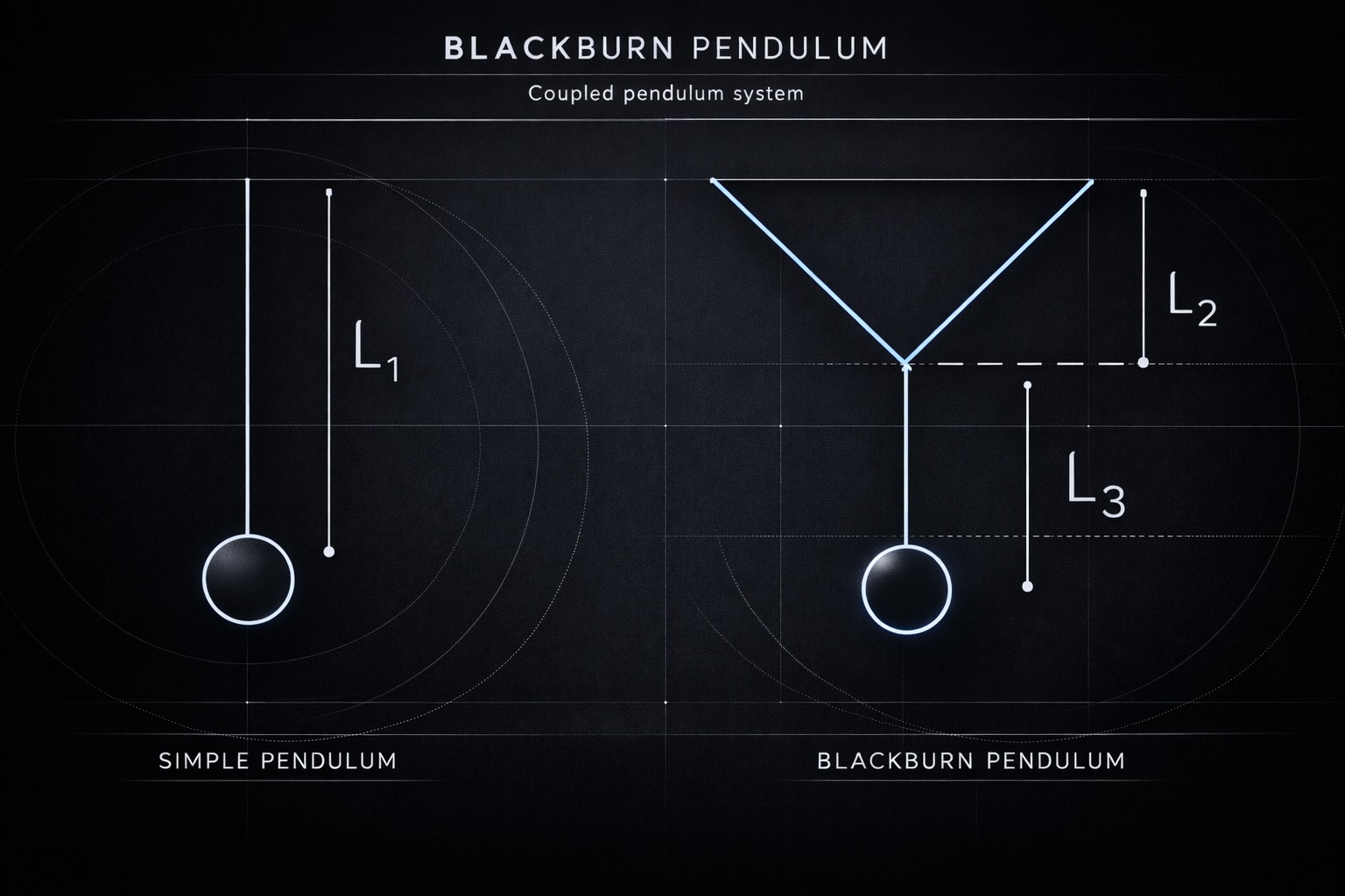 A Blackburn pendulum introduces two different effective lengths depending on the direction of motion. Each axis swings with a slightly different period, causing the motions to interfere and generate intricate geometric paths.